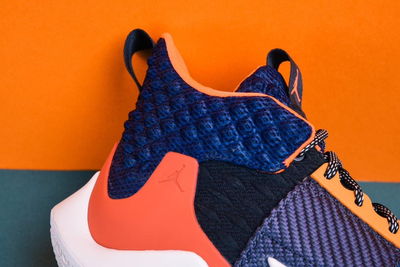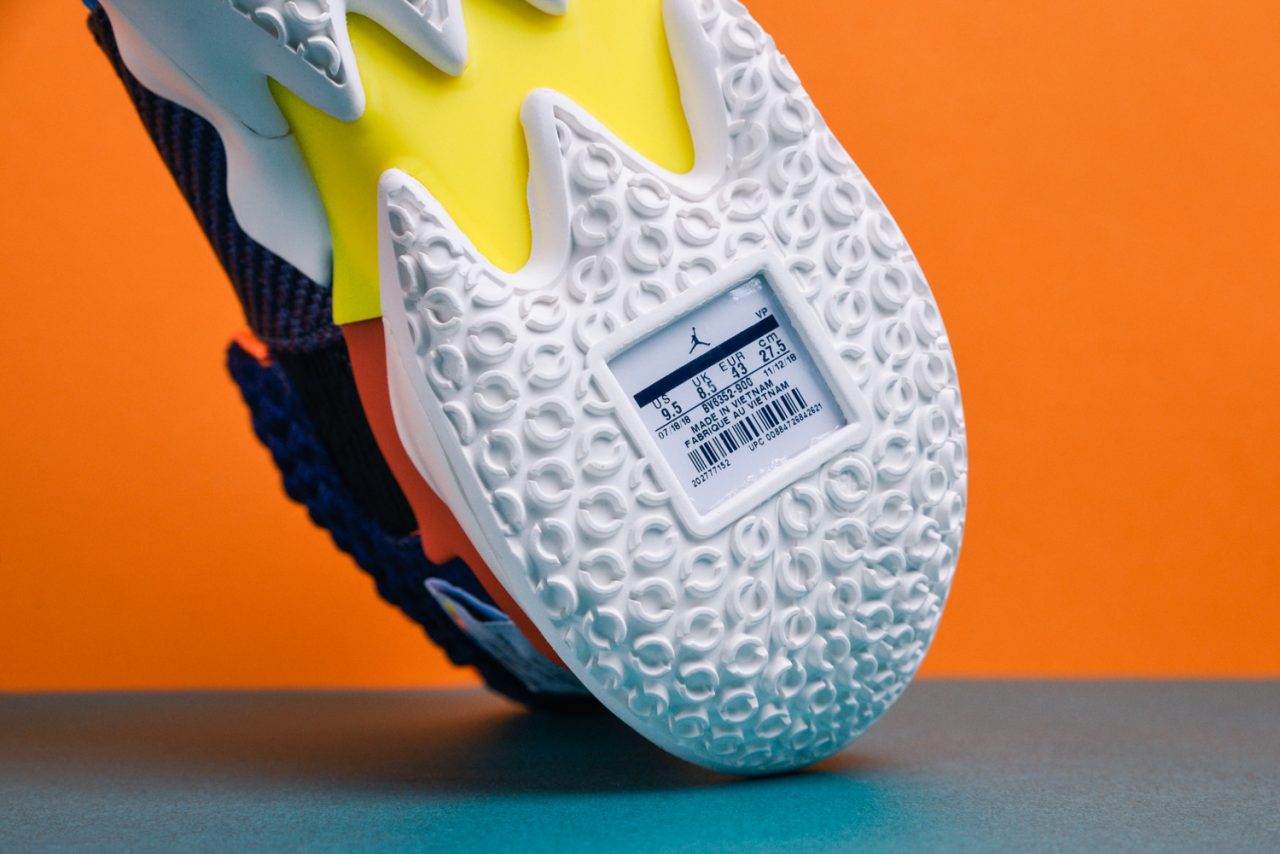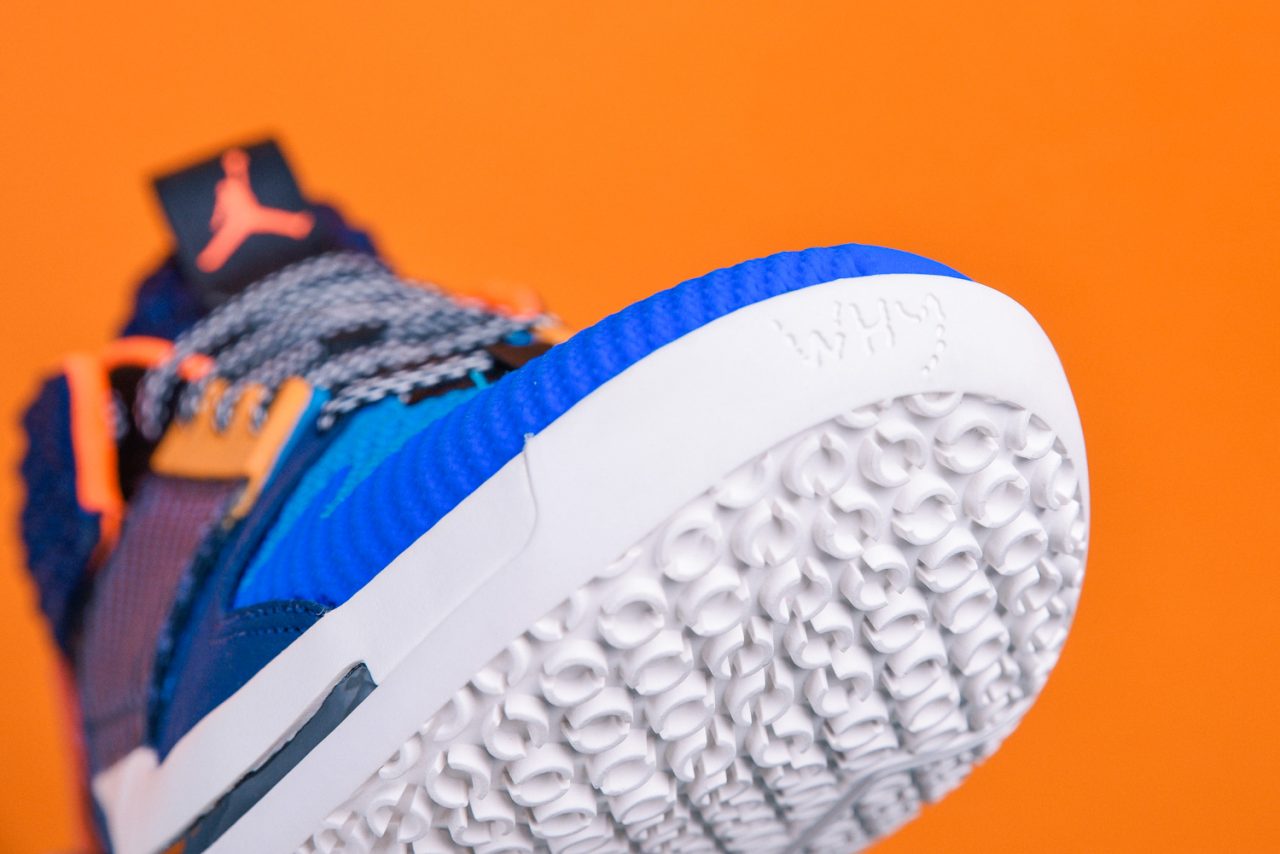 捻熟 Russell Westbrook 的朋友或許知道,當單腳躍起時他習慣用腳趾來發力,將全身力量灌注於前掌,促成雷霆萬鈞的爆發力,針對這點 Jordan Why Not Zer0.2 從上一代全長 Zoom Air 配置更改為前掌 Zoom Air,這無疑是更與 Russell Westbrook 本人相互契合,替啟動第一步挹注更多能量回饋與敏銳反應,而包裹著 Zoom Air 的是前後掌兩塊發泡材質,穩定緩震且適時承接雙腳,保護經常衝擊籃框並從高處落下的 Russell Westbrook,更能從他場上實著看出,中底是具有一定潰縮範圍的。