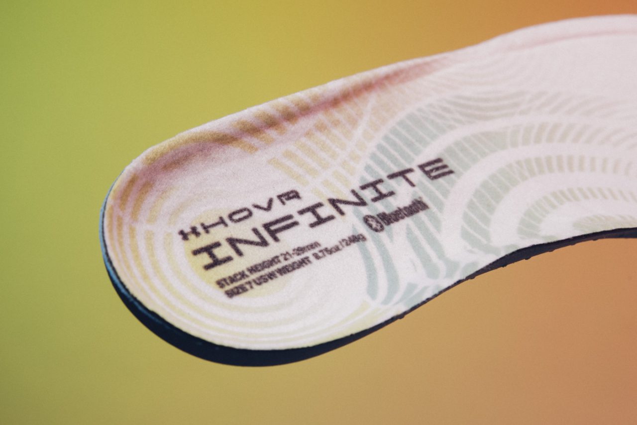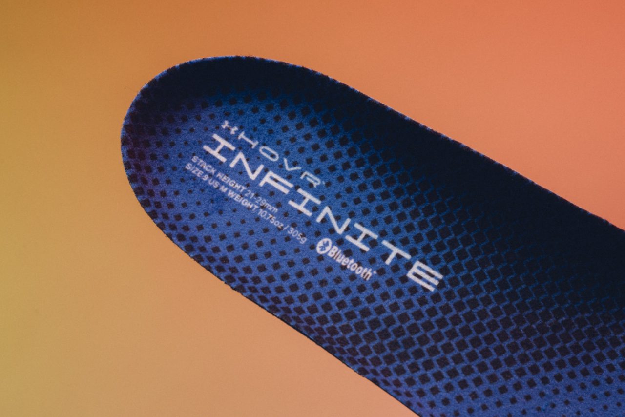 對於男、女性跑者,Under Armour 不只是提供相對應尺寸而已,就連細微差異也有周全考量,品牌的生物力學團隊針對男、女生腳型進行研究,發現女生腳跟長度普遍偏短、足弓較敏感,因此有為女款鞋墊再加 2mm 達到 8mm 厚度 (男款為 6mm),稱職發揮 PU 鞋墊的作用。此外在鞋墊上印有 Bluetooth 藍芽圖樣,因為 HOVR Infinite 內部嵌有晶片能連結 UA MapMyRun APP,幫你紀錄運動時間、距離、配速、消耗卡路里、海拔高度等數據,並能依據跑者狀況量身規劃長期訓練菜單,作為你的貼身教練一般協助掌握運動成效。