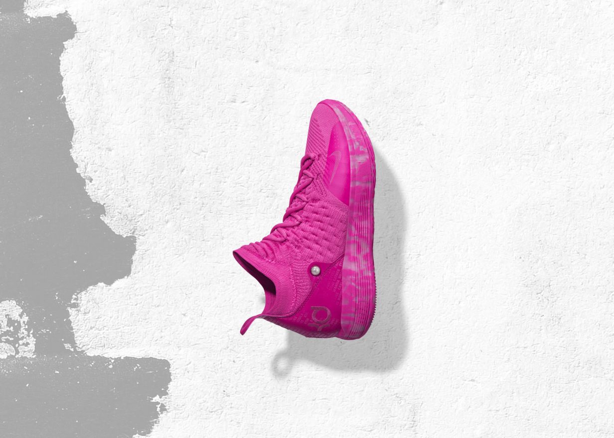 由 Kay Yow 癌症基金會聯合打造的 KD 11 ‘Aunt Pearl’,在設計上靈感來源自成功戰勝癌症的 59 名患者姓名。她們強而有力的故事激勵著所有人。