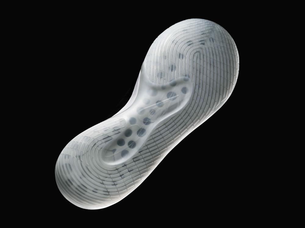 - 把 Phylon 中底進行鏤空處理,幾十個大小不一的孔洞讓「氣墊能被看見」,而外層包裹 TPU 作為穩固之用。
