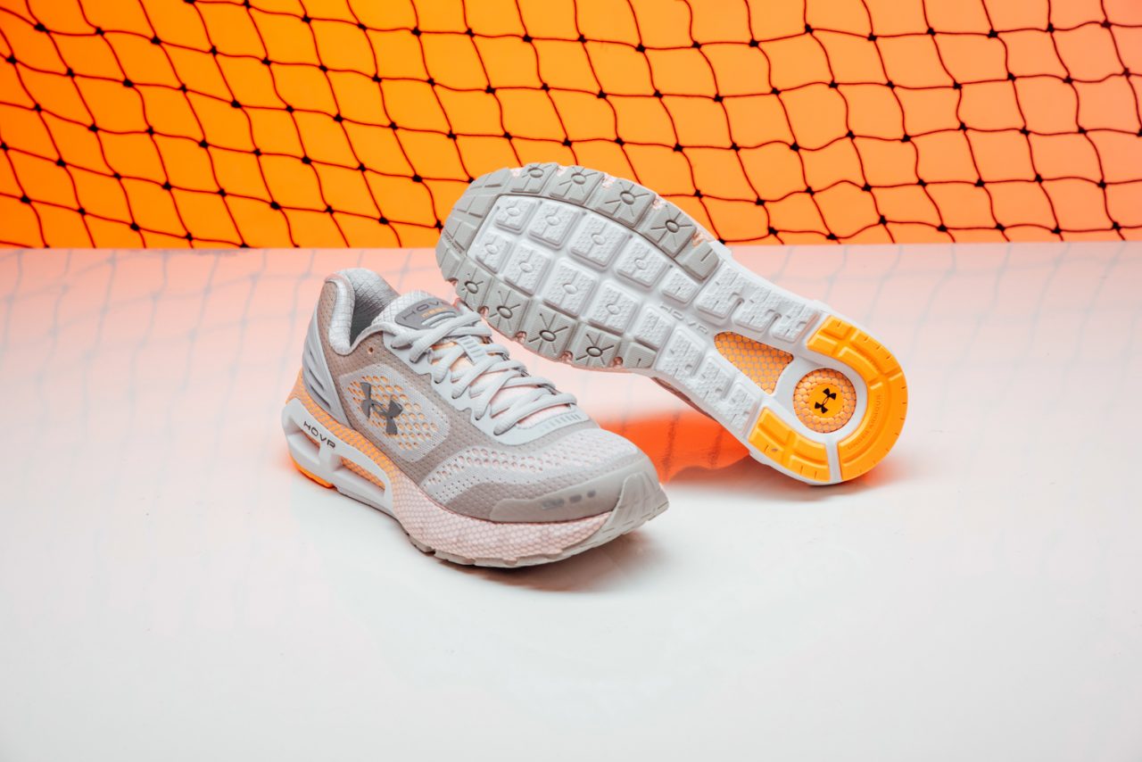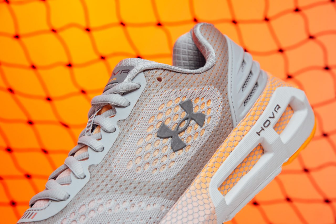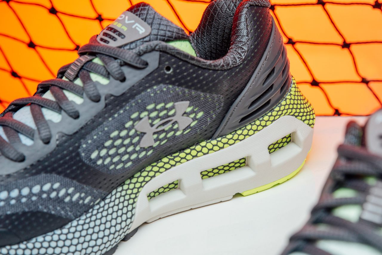 最近半年來,榮登編輯部收到最頻繁的機能跑鞋類,絕對非厚底跑鞋莫屬,不僅是慢跑鞋市場的趨勢受到影響,甚至連街頭穿搭也開始奉行結構主義設計,而當拿到 Under Armour HOVR MEGA 當下厚實的中底與簡約鞋面形成強烈反差感,如果用車子來比喻的話,就像前幾天看到俄羅斯人將賓利房車改裝戰車履帶,更能適應全地形,而 HOVR MEGA 加裝超厚中底,是為了展現顯著緩震與柔軟表現。對於厚底跑鞋的異軍突起,或許有人也抱持著懷疑態度,畢竟在傳統觀念裡中底越厚能量散失可能越多,但國外有份研究實驗顯示,在快、中、慢不同跑速搭配上下坡情況下,穿著高緩震跑鞋與一般跑鞋的兩位跑者,所消耗的氧氣量無明顯差異,雖然前提兩雙鞋款重量相仿,不過由此可知在材料科技的日新月異下,即便是厚底也能擁有高效率成績,其中 UA HOVR 科技就是一例。