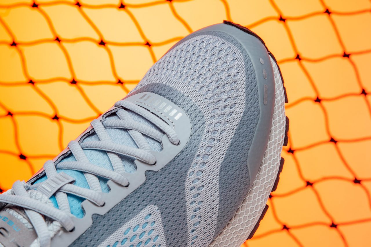 說到鎧甲,HOVR MEGA 鞋面也是層層堆疊上去的,以機能網布為主體是 HOVR 跑鞋家族的共通點,輕量調性讓即便擁有厚實中底的 HOVR MEGA,整體重量也不會有太多負擔,此外雙層設計搭配內襯飽滿填充,帶來舒適且紮實包覆體驗,這點與中底調性相契合。另外鞋面還建築上熱貼合處理來著重局部的鞋面穩固,編輯相當喜歡中段處的口字型鞋面預留窗口,就像網子般給予牢固的側向支撐,同時又能兼顧透氣需求,這樣的設計語言與 HOVR 網式結構有異曲同工之妙。至於在後段處搭載穩定片,夾住後跟避免多餘晃動,穩固鞋面與緩震中底雙效性能共同打造 HOVR MEGA 的舒適關鍵。