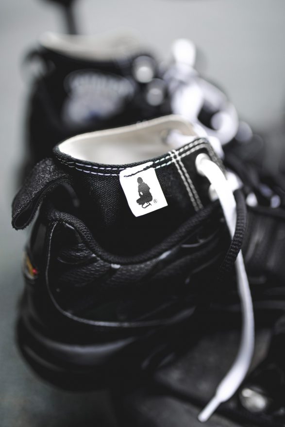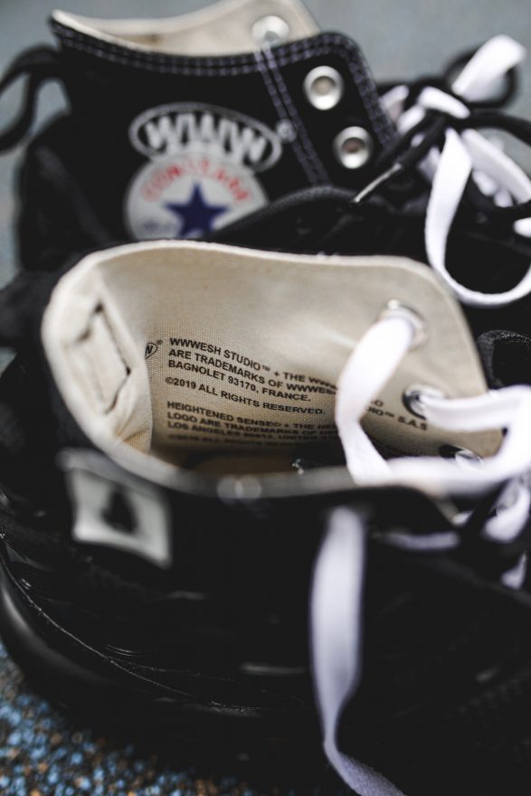 而我們也好奇為何會選擇這兩雙鞋呢?Heightened Sense 告訴我們 Air Max TN 是藝術單位 WWWESH STUDIO,所處的巴黎 Bagnolet 地區之街頭鞋履代表,而 Chuck Taylor 則是洛杉磯 Skid Row 地區的鞋款代表,也是藝術單位 Heightened Sense 生活的地方,兩種鞋型結合不正好象徵兩單位的攜手,讓作品更具背後意義。