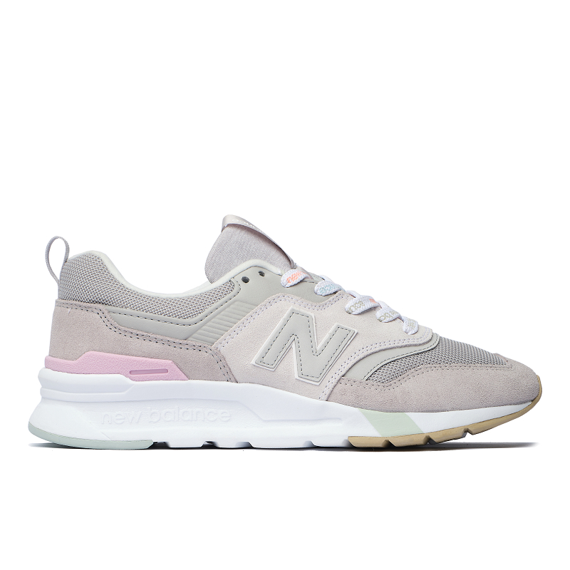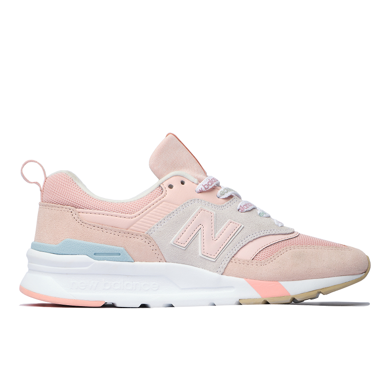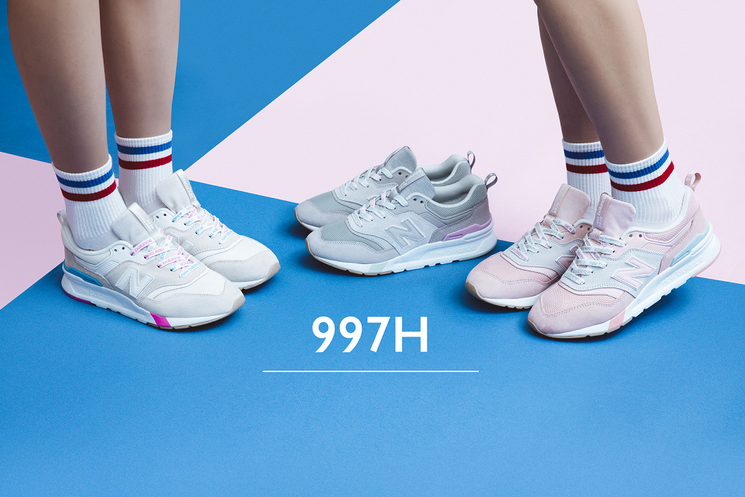 New Balance 997H 是以 MADE 美製 997 鞋型為藍圖,融合 998 兩款經典元素重新設計中底細節,在 90 年代復古風潮中注入現代摩登流線,以 Ground Contact Eva 減少大底橡膠比例,達到輕量化效果,部份細節採用麂皮材質混搭網布,打造流行層次。隨著七夕情人節將至,New Balance 為女孩們推出全新配色 997H,三款新配色靈感源自 New Balance 840 系列,此系列曾為韓國女星 IU 所著用,讓粉嫩色彩在 997H 經典重現。