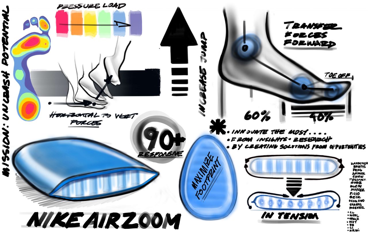 相信有勘履者應該早猜到,AlphaDunk 設計圖稿也已經透露答案,沒錯,鞋名 Alpha 正是與 90 年代象徵 Nike 高階產品的 Alpha Project 企劃有關係,開發 AlphaDunk 時 Nike 設計團隊在檔案室裡調閱了無數 Alpha Project 產品,其中有些還是沒能發表的款式,他們從過往經驗裡反芻思考,後來延伸出 Library of Bounce 這個概念,把彈性作為發展核心,各位在 AlphaDunk 鞋身上會看到的 L.O.B 就是其縮寫,體現出籃球運動對抗裡很重要的元素 – 飛躍、彈跳。