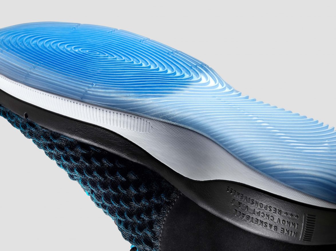 關於超大 Zoom Air 氣墊,Nike Basketball 資深創意總監 Ross Klein 表示:「Nike AlphaDunk 源於對彈跳高度的研究,我們在想如果把 Nike 最具回彈效果的 Zoom Air 放到整個前掌,來承擔從蓄力到起跳的整個過程,它能有怎樣的效果?」於是我們看到了 AlphaDunk,Nike 希望打造出能跟著球員高高躍起轟炸籃框、也能應付禁區肉搏對抗的全方位戰靴。