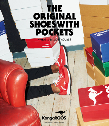 20 世紀 80 年代早期,美國一些體育明星紛紛穿上了 KangaROOS 的鞋子,如棒球明星 Ron Darling、籃球巨星 Clyde Drexler(綽號滑翔機),還有芝加哥熊隊的傳奇人物 Walter Payton,經過多年的品牌蛻變 KangaROOS 不再只是當年滿足各類運動時的功能性鞋款,近年來品牌反而不斷挑戰可能性,在今年更結合流行時尚舞台踩出一條時尚之路。不僅僅是歐美媒體,近幾年日韓時尚雜誌不斷推出 90 年代元素專題,各類復古運動風格成為街頭穿搭的潮流單品,KangaROOS 善用配色和衝突設計將經典口袋鞋款加入色塊撞色運用了繽紛和鮮豔的對比讓鞋款更加有趣味性,而不變的是最經典醒目的招牌拉鍊口袋設計是品牌主要精神元素,讓你隨時隨地都能置放隨身小物。