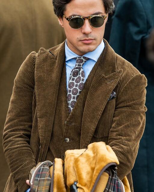 最後要介紹的便是燈芯絨西裝,穿搭難度會比前面提到的幾個單品來得困難一些,畢竟正裝本來就不好駕馭,燈芯絨的成套西裝想要穿出質感也必須費一番工夫。
