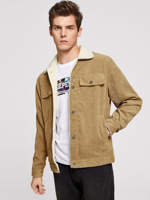 特殊的紋理造就了燈芯絨舒適柔順的表面,美式工裝穿搭最常著用的便是燈芯絨夾克,特別是領口外翻的刷毛款式,內搭一件LOGO文字T就很好看。內刷毛的材質具有極度保暖的功效,外型則有點類似「卡車司機夾克(Trucker Jacket)」,充分展現美式霸氣的硬派風格。