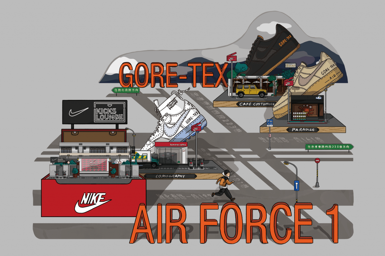 此外,迎接鞋款的推出,NIKE 更同步推出豐富多元的消費者活動,邀請所有人一同展開 #東區風格探險。活動以 NIKE KICKS LOUNGE EAST 作為探險據點,循著地圖漫遊走跳於東區巷弄的三間特色店家 Lomography、Paradise Toyland、COSTUMICE CAFÉ,感受以 AIR FORCE 1 GORE-TEX 鞋款特色為靈感的創意風格情境,完成任務即有機會獲得特別禮物。此外,購買指定 AIR FORCE 1 鞋款,還可獲得台北限定 AF1 紀念鞋扣,為喜愛的經典球鞋增添台北專屬風格。
