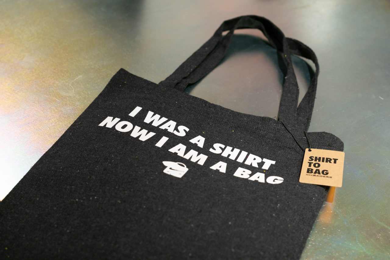 為了呼應店內環保創新的理念,NIKE KICKS LOUNGE EAST 特別準備了獨家贈禮活動,凡於開幕期間在 NIKE KICKS LOUNGE EAST 店內單筆消費滿 6,000 元,即可獲得由 NIKE 舊衣回收再造的限量環保托特包。數量有限,送完為止。