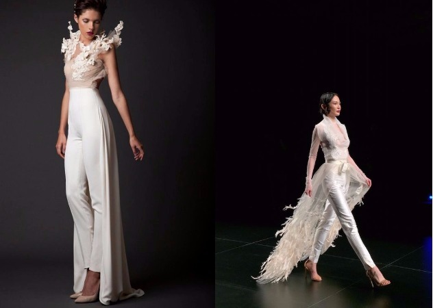 大部分女生在結婚時,都夢想著要穿上華麗白紗,實現自己心中公主夢,但也有人想要穿的帥氣俐落來結婚!比起行動不便的大澎裙,小編在此提供大家另一個選項,穿上長褲結婚也很潮!圖片/pinterest