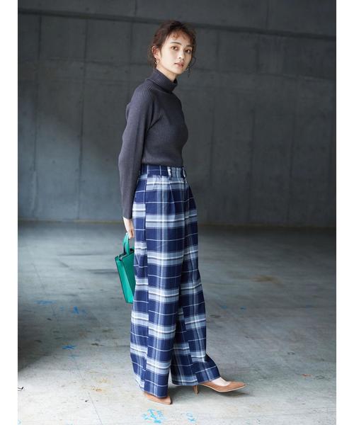 希望造型能較有大人感氣息時,細線條的格紋寬褲將會是首選。還是可以看出寬窄有別的格紋,透過間距較近的線條還是讓整件褲裝表現出了內斂質感。不管是休日選搭毛衣,還是通勤日以套裝形式穿搭都很合適。