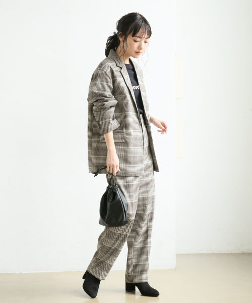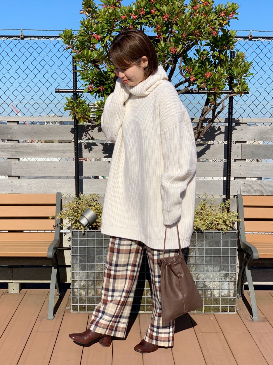 想要穿搭出格紋寬褲的年輕感時,建議就要選擇寬格子的款式,透過大氣的線條趕來營造出童趣印象。若擔心有放大效果的話,可以利用黑、灰色為主的基本色調格紋,不管是搭配寬鬆毛衣還是合身上衣都可以讓下身有收縮的視覺感。
