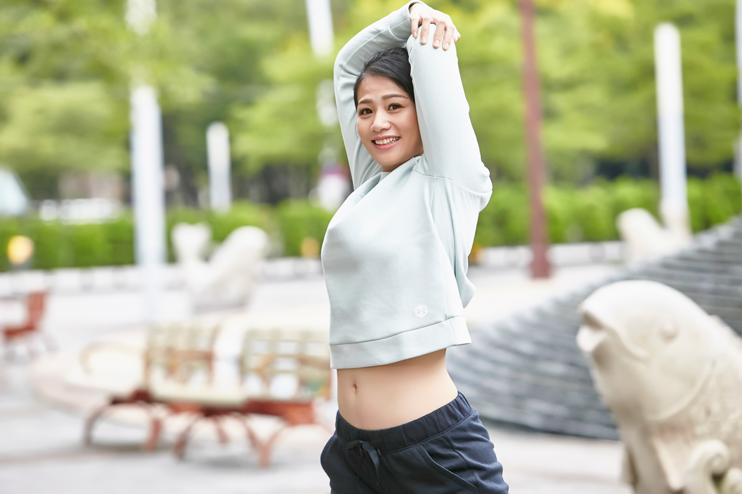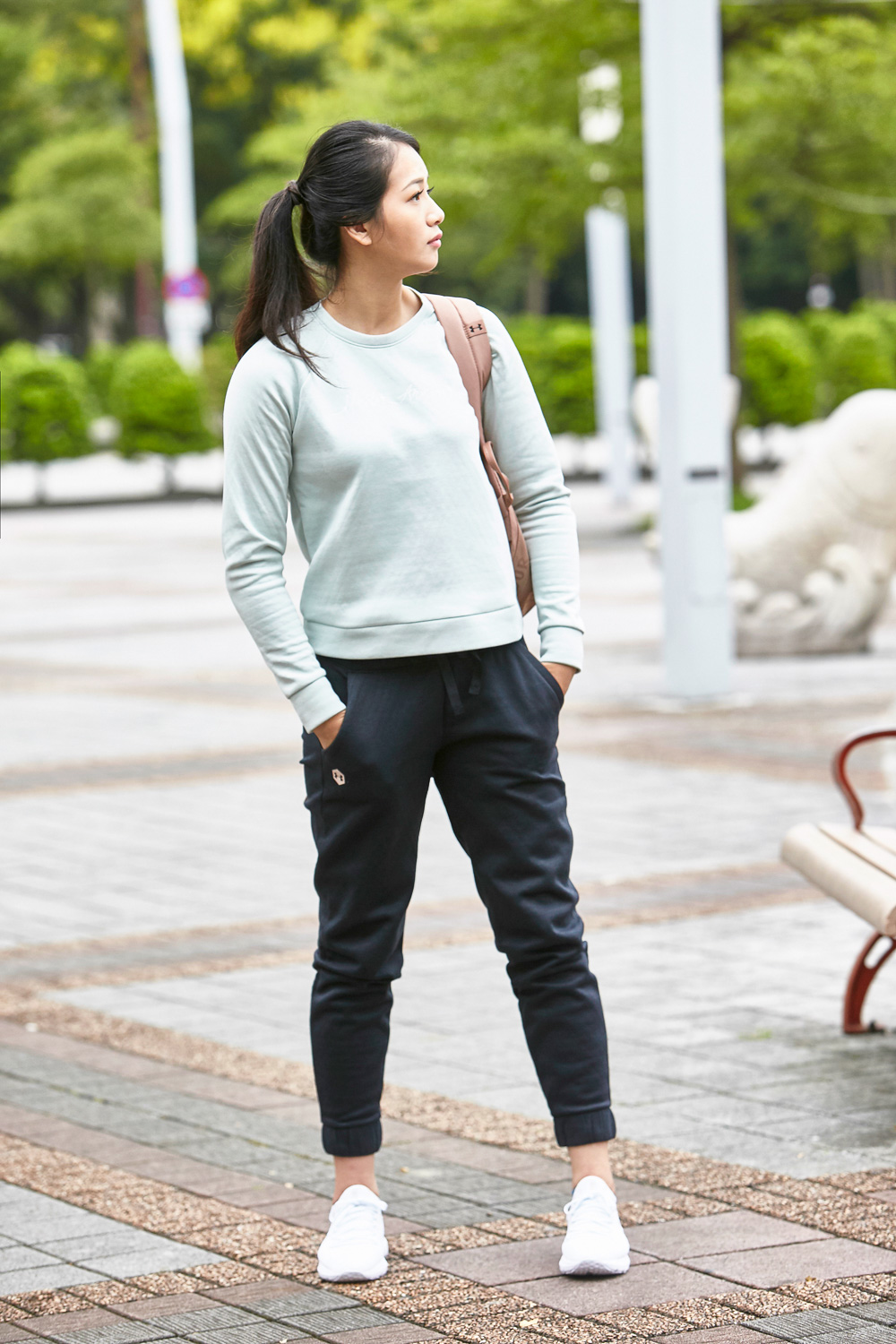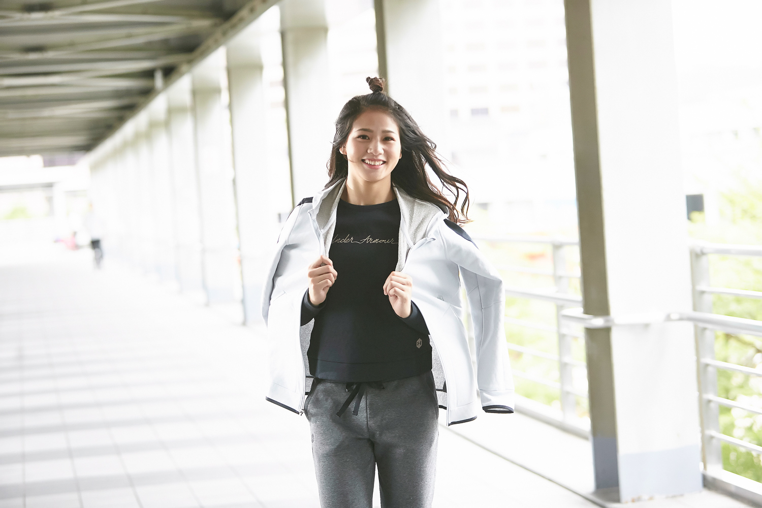 前面幾張圖看下來,你是否注意到陳玟陵身上的衣服特色呢?休閒感較重且有著優雅刺繡的作品竟然來自 Under Armour,除了他們專業機能裝備的強項之外,Under Armour 近年來在運動休閒這領域也是投入不少心力,在陳玟陵演繹下你能感覺這就是套日常能夠著用的服裝,而且胸前的刺繡或是淺色調色彩都成為生活穿搭中的小心機。而其實服裝中還有值得強調的大秘密,布料內襯含有的礦物科技,與過往介紹過的 UA RUSH 系列特色相同,能夠吸收身體散發熱能轉換成紅外線回傳給肌肉組織,增加局部血液含氧量,幫助加快身體的修復,讓出門逛街時也能進步。
