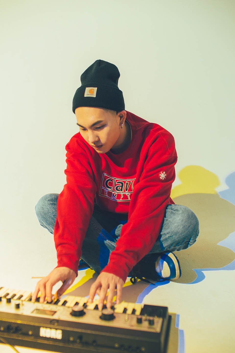 米奇起初是樂團鼓手,17 歲時被製作人蔡政勳挖掘,從製作助理做起,如今成為 A 咖編曲、製作人,2017 年與剃刀蔣共同創辦「新樂園」音樂廠牌。看似玩世不恭,其實練功扎實無比。「抓和弦、套模組就像背單字,平常就要多吸收、紀錄、剖析別人的音樂。」他強調 Demo 有時效性問題,總是全盤打掉再重新架構。「編曲太重要了!細微差異都能改變歌的感覺。編曲應該是很有當代感的,我會照著當下覺得最對的方式去做。」