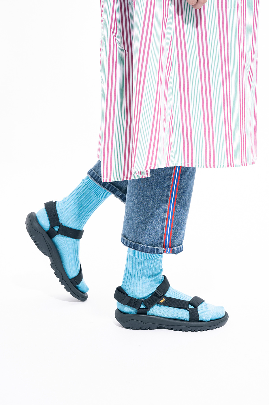 黑色的 TEVA 涼鞋是最百搭的顏色,搭配呼應上身色系的亮眼色襪即能塑造率性時髦風格,無論上班著用或是週末輕旅行都能輕易融入日常穿搭中。