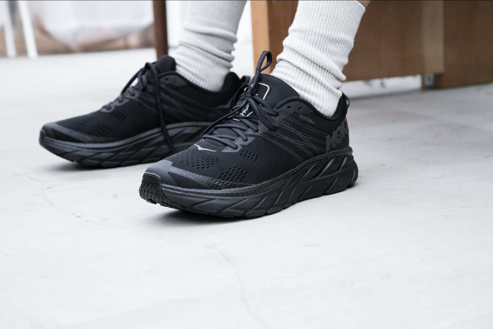 舒適是他穿上 Hoka One One 的第一印象,尤其是包覆感以及厚底帶來的緩震性,適合需要一整天長時間走動、站立的人,譬如今天 Akko 要例行性巡店,Hoka One One 就會是他的首選,而著用最新的 Hoka One One Clifton 6 之後,更是讓 Akko 讚譽有佳,首先對體重較輕的 Akko 來說, EVA 中底密度調配的較低,踩起來更有感覺,另外 Hoka One One 標誌性的弧形大底結構 Meta-Rocker(能讓跑步觸地過程更流暢的科技),也將落差修改的不那麼大,來符合都市日常行走的需求,就連閱鞋無數的 Akko 都用「今年目前為止穿過最好穿的鞋」來形容。