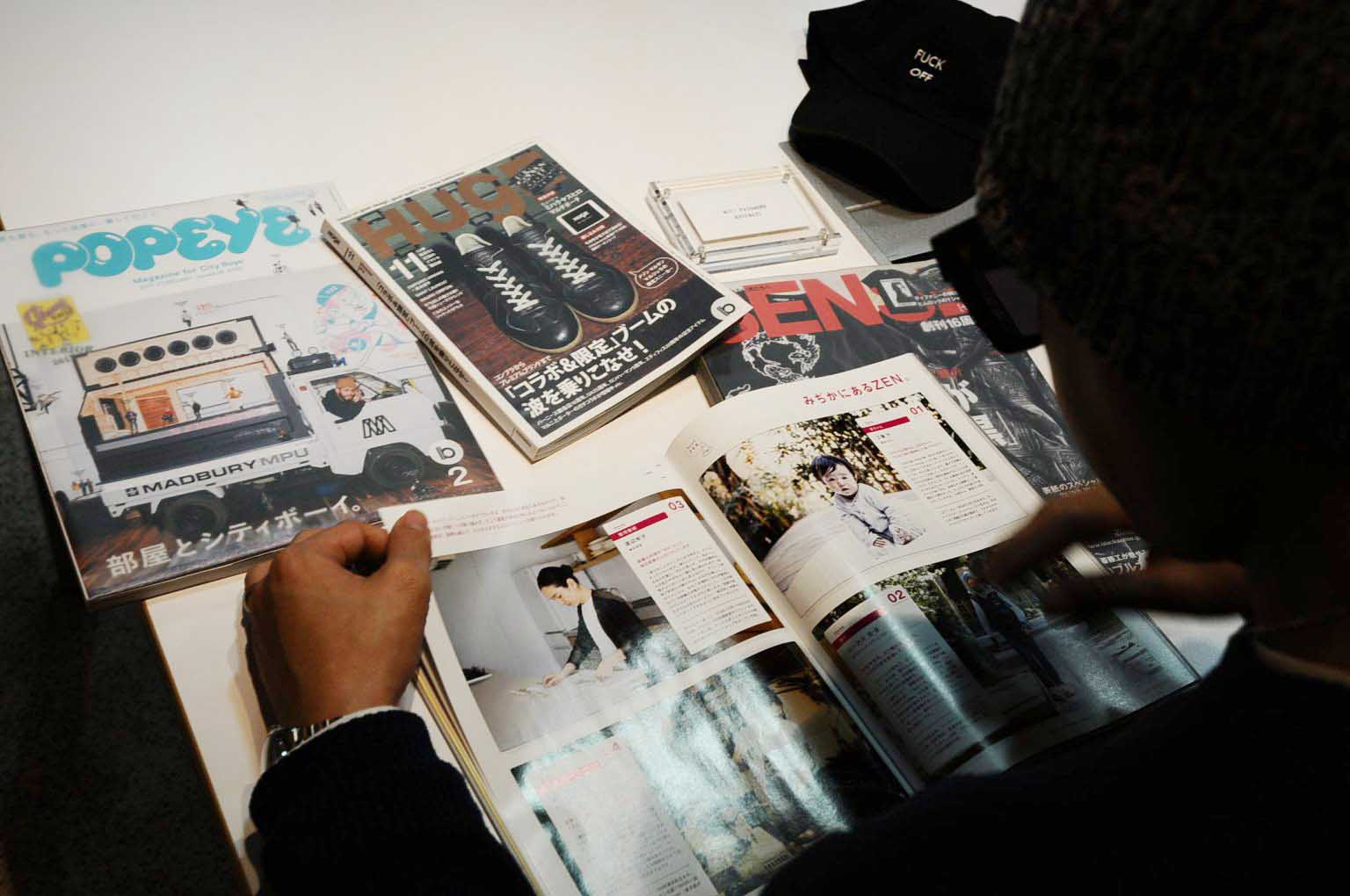 在大學的時候為了看懂日本雜誌的內容,AJ 自學了幾年日文,所以大部份都是看日本雜誌吸收資訊,當時最常看的為 BOON、Street Jack、MEN’S NON-NO、ASAYAN、STUDIO VOICE…等等。看到有意思的內容、品牌介紹或排版設計,也會截取成為文件資料備份起來,「我以前曾收藏過上百、千本的外文雜誌,不過都被我剪的破破爛爛的,因為我的習慣會把自己覺得有興趣、分門別類做成剪報。」服裝是興趣也是工作,關於這股新興亞文化風潮的知識每天都在鑽研及接觸,「當時還有人稱我為裏原宿博士,現在聽了你們可別笑。」對於編輯有自身要求的 AJ,他認為大量資訊的涉獵及研究絕對是必須的,否則媒體就沒有足夠的專業提升公眾的品味。。