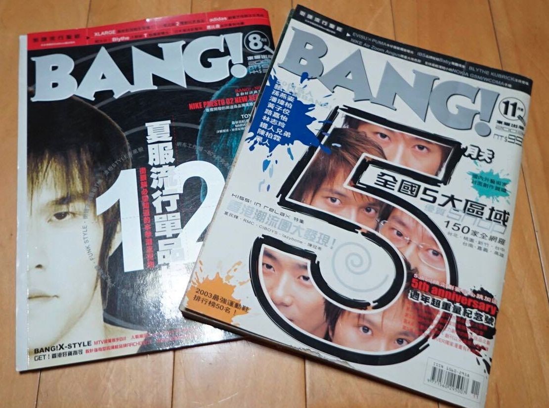 (註記:BANG!雜誌在九零末期至千禧年後台灣街頭文化對於日本外來文化的接觸及推廣具有影響力象徵。或許很多年輕朋友不知道,在早期《BANG!》和《COOL流行酷報》甫發行,甚至時爾後幾年曾短暫發行的《SMART》,裡頭皆只有大量的日本情報,然後變成中文來發行,直至營運成長以及最重要的廣告量逐漸增加才能慢慢增加本土自製內容的比例。而二刊物的日本情報來源-《COOL 流行酷報》來自日刊《Cool Trans》的內容,而《BANG!》的日本情報則由 九零年代的指標性刊物《Boon》而來。)