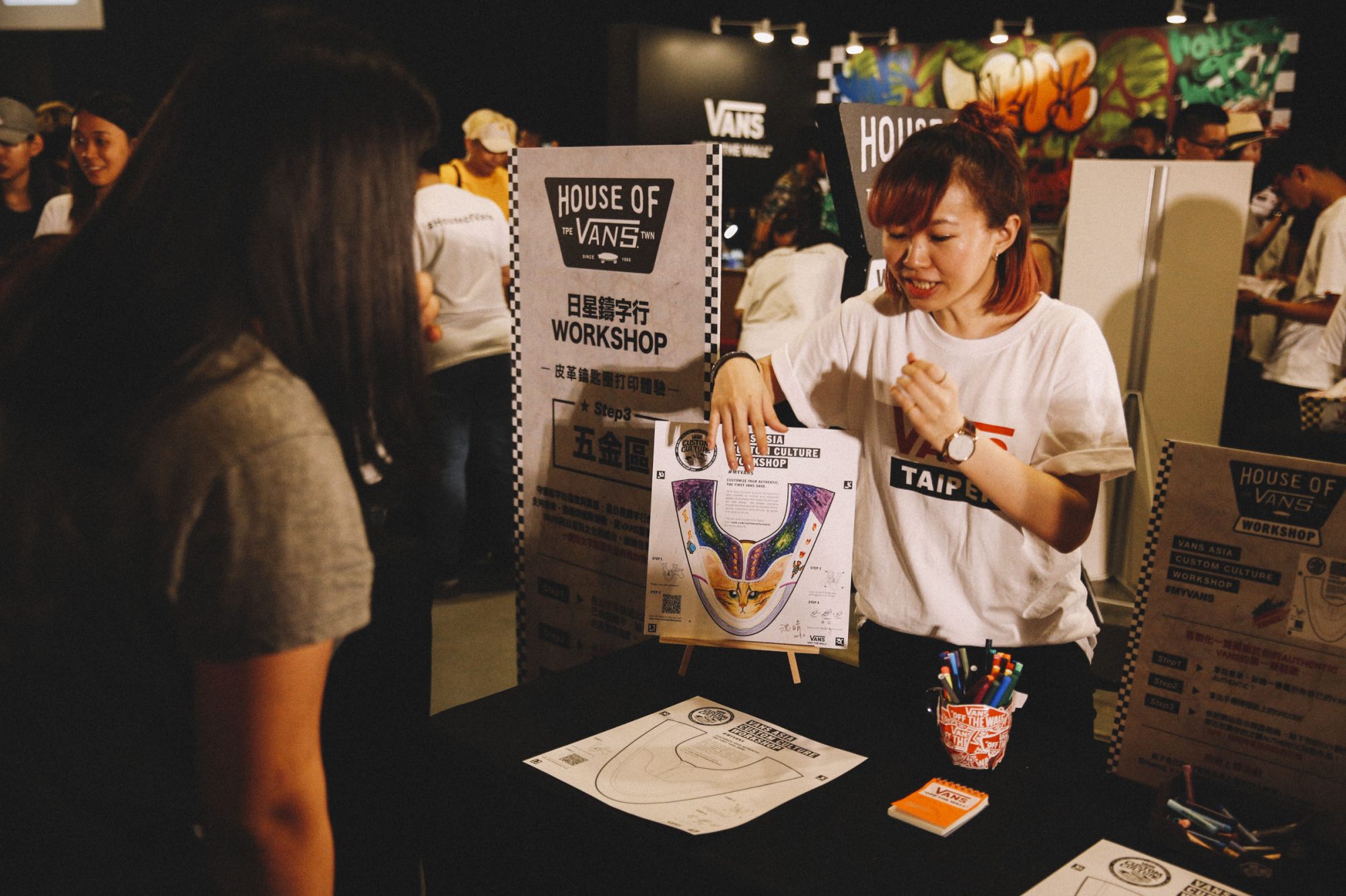 延續 50 年品牌的光榮時刻,致力推動各種極限運動、藝術、音樂及文化,以「“Off The Wall”」精神貫穿品牌精神的 Vans,於本次 House Of Vans 台北站這場盛事中,特別增設 Diy Paper Shoes Workshop 互動區域,Vans 愛好者可盡情揮灑創意,於經典的 Vans Authentic 紙模型繪製欲呈現的鞋身外觀;並透過手機掃描形成 3D 圖示,藉由社群媒體和好友分享,讓 Vans 愛好者親自體驗繪製鞋款的樂趣。此外,透過 2017 Vans Asia Custom Culture Competition 比賽,可與亞洲各地參賽者競賽,優勝者還可獲得高額獎金。在活動現場可說是頻頻出現精彩之作,也於愛好者們的腦力激盪下成為 House Of Vans 台北站一個亮眼的註腳。