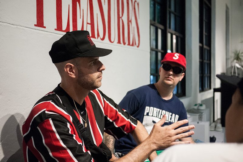 位在華山的時尚名所 Department (DPT),在月底帶來了讓人為之驚豔的 Pop-Up Event,邀請洛杉磯話題勁旅 PLEASURES 進駐 DPT 外,主理人 Alex James 與 Vlad Elkin 的造訪,為禮拜五的夜晚帶來一場結合街頭與音樂的開幕慶典。過去從資料上多為關注的焦點是原 Publish Brand 的創意總監 Alex James,不過與 Vlad Elkin 這兩個一位來自西岸,一位來自東岸的創意人,一見面聊起音樂,彷彿有著一拍即合的默契,加上兩人 Chill 的個性也相近,如此一來在創作上更加得心應手,自然讓創作更具玩味的價值,也難怪會受到 Dover Street Market 的青睞而進駐。這天 Vlad 穿著 Trip-Pop 三巨頭之一 – 那帶著深遂幽暗的 Portishead (波提斯黑) 團 Tee,就足以讓人心裡暗想:「這人也太有品味了吧。」