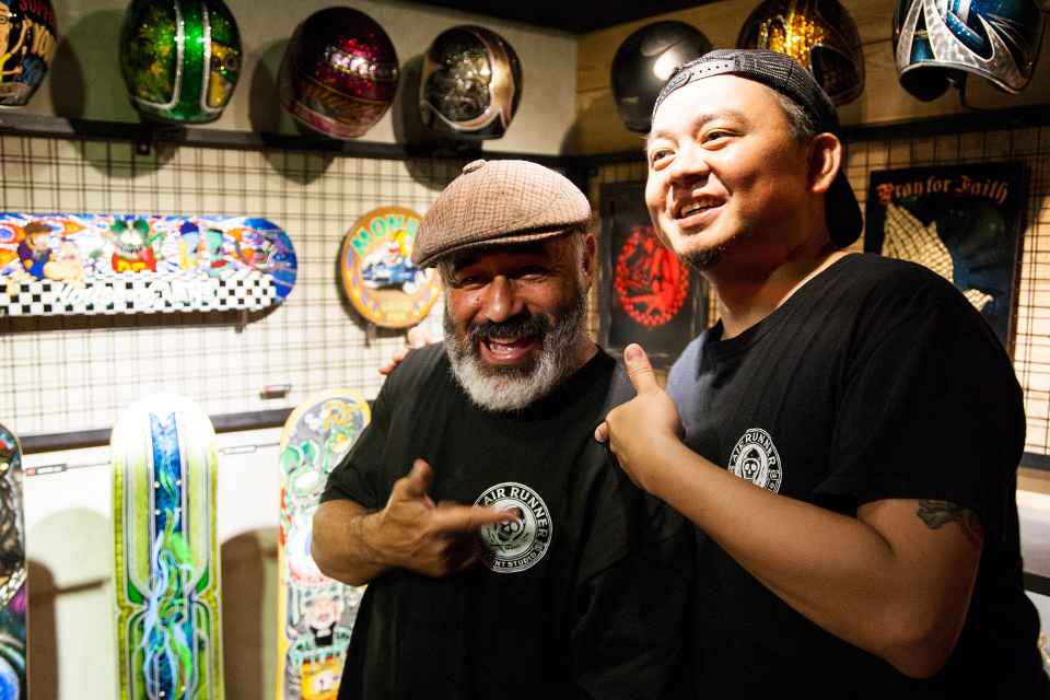 除在極限運動的輝煌成就,Steve Caballero 也曾以音樂人之姿加入 The Faction、Odd Man Out、Shovelhead 與 Soda 等龐克樂團,近年熱衷於藝術創作與改車藝術的 Steve,延續 50 年代奠定 Kustom Kulture 文化始祖,ED”Big Daddy”Roth 的怪物塗鴉風格,也以自身的生肖”龍”為主題開啟一系列的創作;取材生活、電影與玩具相關的題材受到好評外,也曾以蜘蛛人作品與 MARVEL 合作,於聖地牙哥動漫展 San Diego Comic Convention(SDCC)展出;多次參與日本車界盛會 – 橫濱 Mooneyes 改裝車展外,光是 Steve 那兩台 1944 Harley Davidson Flathead 與 1952 Triumph Pre-Unit “The Scout”,就足以讓人垂涎三尺。結合滑板美技、改裝車藝與藝術創作,Steve Caballero 至今仍帶著 “Skate For Fun” 思維,盡情的進行各項的創作。對了由於 Steve 有混到一點日本血統,有一點台語其實 Steve 是聽得懂的。