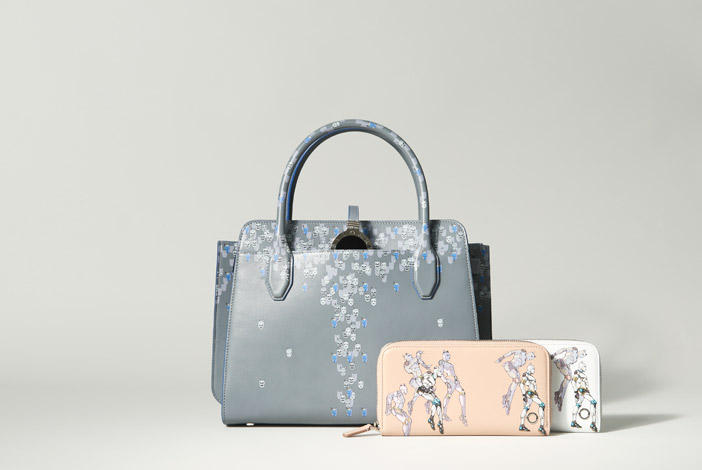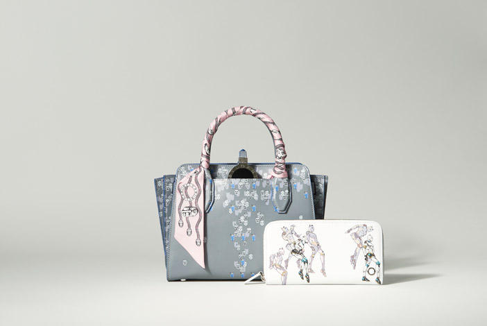 本回《JOJO的奇妙冒險》與寶格麗(BVLGARI)的聯乘,以替身皇后殺手(KILLER QUEEN)為設計主軸,在灰藍基底的手提包堆疊皇后殺手的頭顱,灰、白、粉橘與銀座塔店限定丹寧四款顏色的長夾,則並陳皇后殺手的戰鬥姿態,特別的是絲巾與包用絲巾的部分,將一二部重要的識別石假面,以及第三部至第八部的人氣替身,如白金之星、世界、瘋狂鑽石、皇后殺手、回音 Act 3、黃金體驗、性感手槍、石之自由、白蛇、獠牙 ACT 4 ,以及最新作《JoJolion》主角東方定助的替身,來自已故樂壇巨星王子(Prince)的單曲 Soft And Wet,更推薦 JOJO 迷作為購入參考首選。荒木老師也表示,替身的概念來自精神能量的具體化,而寶格麗擅於使用 Serpenti 蛇形元素於包款和飾品配件上,與替身皇后殺手強烈的身份與迷人的外貌相當契合,故成為此合作系列的發想,希望也能為使用的人帶來保護的意涵。此系列日本限定款將於 11 月 1 日於伊勢丹新宿本館一樓開賣,11 月 10 日起於 BVLGARI 店鋪發售。