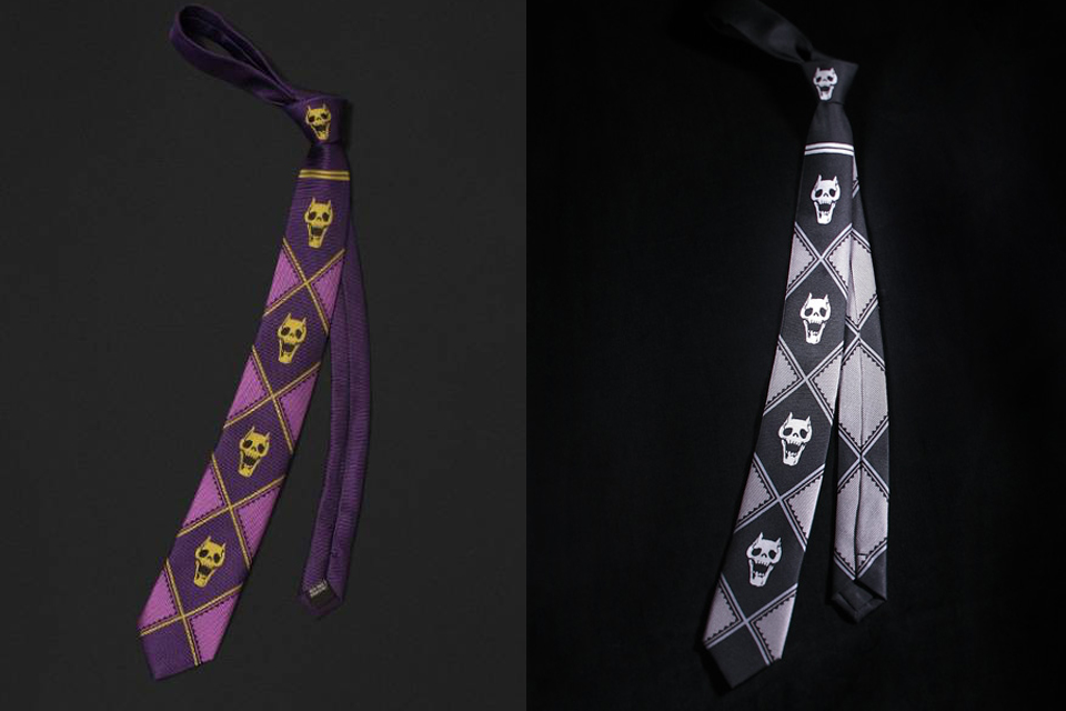 2008 年以 JOJO 世界觀打造的服飾品牌 ultra-violence,當中最具話題的單品,就是將殺人鬼吉良吉影著用的代表領帶實體化,推出「KILL・A’s tie」。除將產地移往義大利推出第一版絲質,第二版布面的單品,以紙盒收納外,包覆的紙袋也別具新意的使用漫畫中吉良吉影所拿,袋中藏著手的「St. Gentleman」三明治袋,2016 年應動畫版放送,Premium Bandai 亦複刻吉良吉影領帶,進一步推出吉良吉影上班族用品系列。