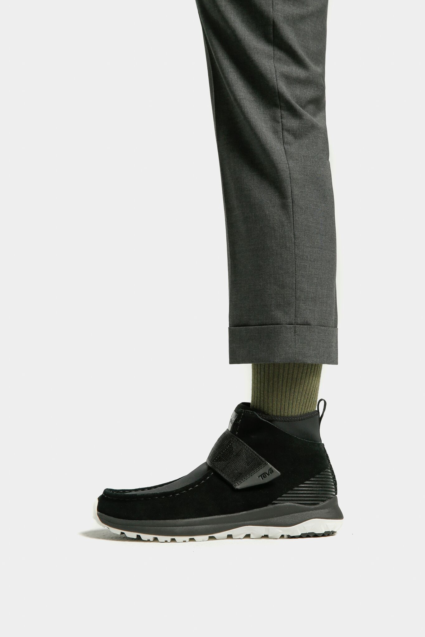 若因應正式會議或場合需要換上正式裝束,時尚簡約的 Peralta Chukka 會是最佳選擇。Peralta Chukka 鞋面以防潑水布料拼接防水麂皮鞋面製成,不僅防潑水也更快乾,遇上大雨也不擔心雙腳被浸濕;鞋面特採 Teva 織帶腳背帶固定鬆緊,能輕鬆調整腳背高度,讓看似拘束的正裝穿搭也能俐落有型;專利蜘蛛大底更具備優異的抓地力,能有效抵抗潮濕環境。面對陰晴不定的秋老虎,一雙舒適的 Peralta Chukka 高筒休閒鞋配上保暖長襪,就能讓你放心在外辦公奔波。