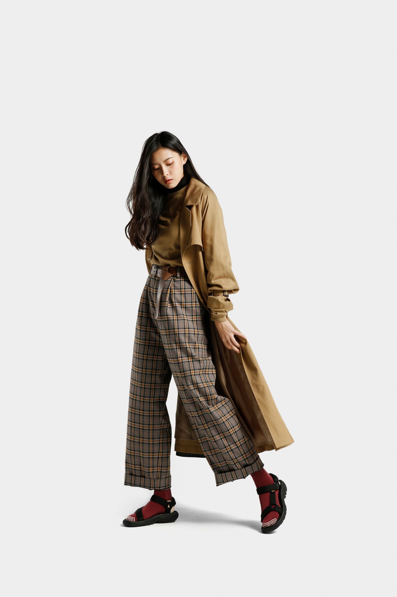到要早起趕上班打卡心情太沈重?換上 TEVA 或許能讓你的腳步輕盈些。趁著無雨涼爽的秋日早晨,換上百搭的 Hurricane XLT 2 黑色織帶涼鞋,搭配知性的駝色風衣、格紋寬褲平衡涼鞋的休閒感,再穿上同樣呼應秋季大地色系的酒紅色或綠色長襪,就能讓黑涼鞋能自然融入整體造型中。