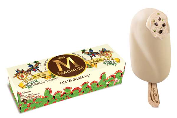 這裡要說的不是現在台灣已經成為濫觴的時尚、美妝品牌 V.S. 某家飯店的限定下午茶,而是與某個食物品牌推出特別系列,這個才有趣。大仁哥 Alexander Wang 不久前跟 MAGNUM 推出用上比利時巧克力的巧克力雪糕,義大利浮誇時尚品牌 ##[DOLCE & GABBANA]## 繼 2014 年跟冰淇淋大廠 MAGNUM 推出靈感來自家鄉西西里島夏天的雪糕,最近又跟 FIASCONARO 推出同樣靈感的 Panettone 義大利麵包,包括 1KG 罐裝嘻嘻裡開心果口味,還有 1KG 與 100g 的西西里柑橘、藏紅花味道的 Panettone。