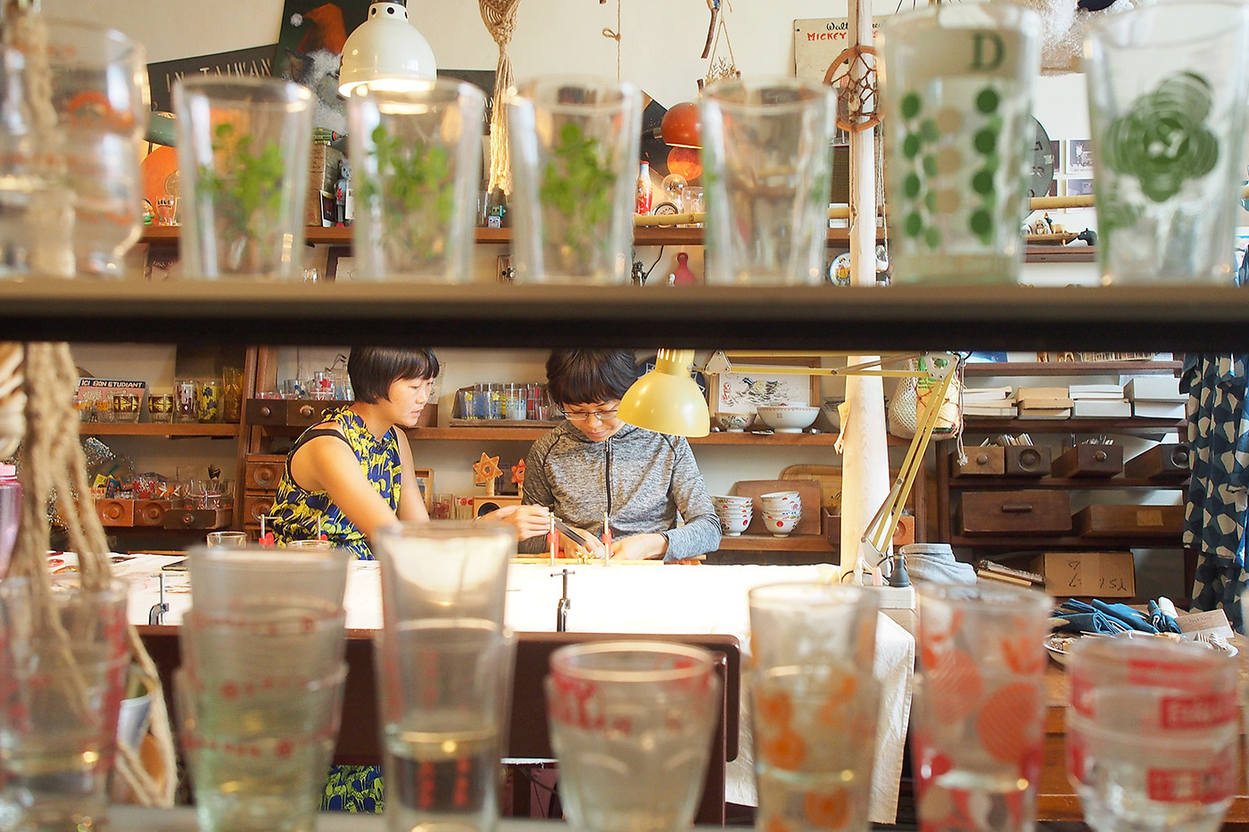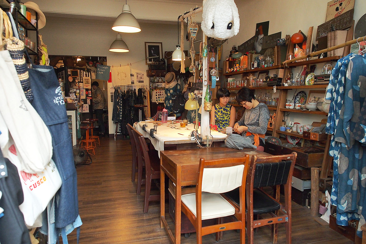 走上正對建成國中的老房子通往二樓的階梯,你會發現這裡真的是間雜貨店,店裡擺滿各式小物,像是老闆娘親手織的貝蕾帽、早期的老玻璃杯、鐵皮機器人等五花八門非常有意思。自 2011 年成立至今已經 8 年了,從大稻埕搬到赤峰街附近、從一樓搬到了二樓,不變的是老闆娘 Nana 單純「分享」的理念,以及店中央擺的大桌子是店的靈魂,「這張桌子跟著我從舊店搬到了新店,當初就是因為朋友看到這張桌子說『你這大桌子擺在這浪費了,怎麼不用它做些什麼事。』於是,一切都從這張大桌子開始,我開始邀請一些朋友來這邊開設工作坊,很多老師的第一次授課經驗都是被我邀請來的。」