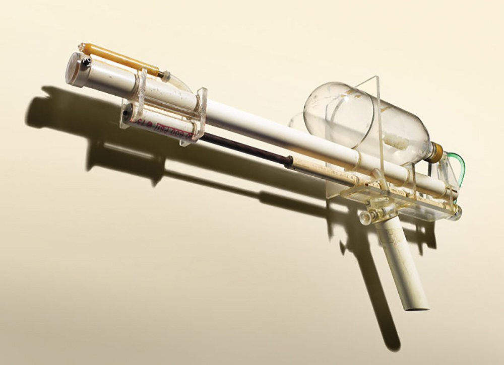 「我當時正在研究藉由水流加壓的製冷技術,」Lonnie Johnson 說:「有一天我在浴室洗臉槽測試自己做的噴嘴,結果噴出來的水柱超強,橫越整間浴室,『 Geez! 』我還記得驚呆的自己只能說出這個字。」Lonnie Johnson 從水柱看到了一個新的可能性,那就是藉由水流加壓來發射的水槍。