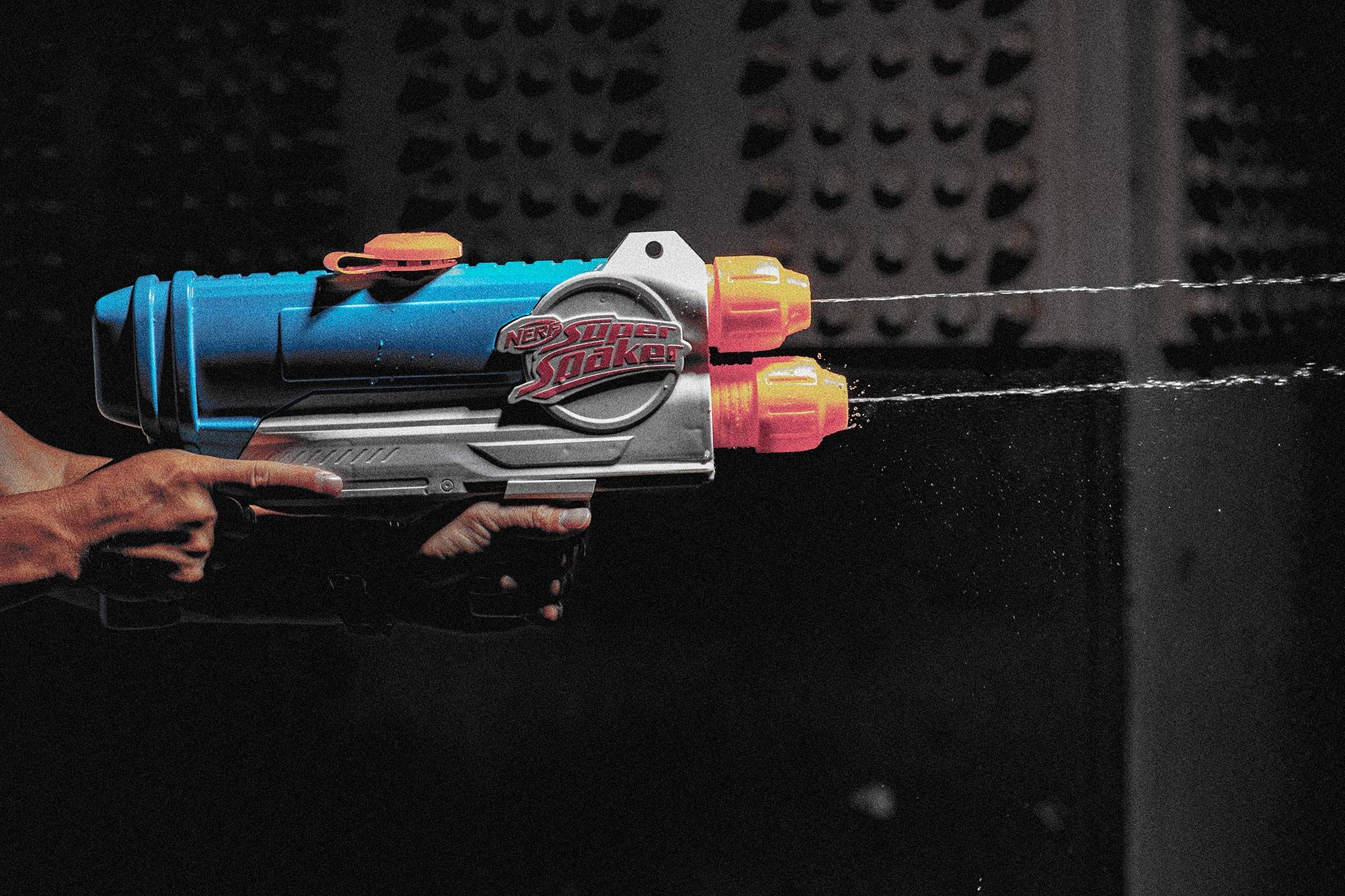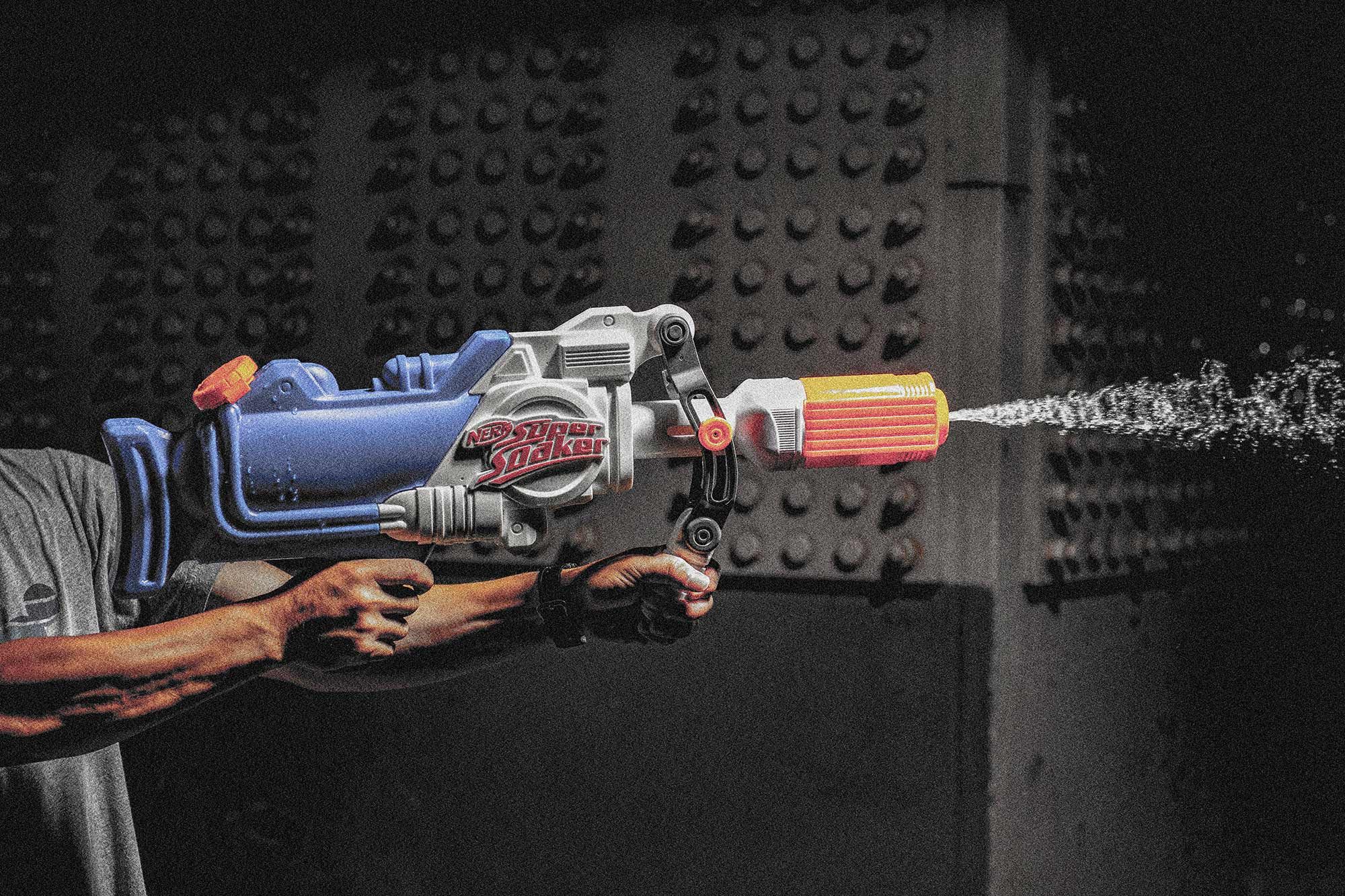 從將自製噴嘴裝在家裡浴室洗臉槽得到靈感的NERF Super Soaker,利用水流加壓,藉此發射出強力水柱,發明者Lonnie Johnson用”Wow”來形容第一次水槍扳機的感覺。