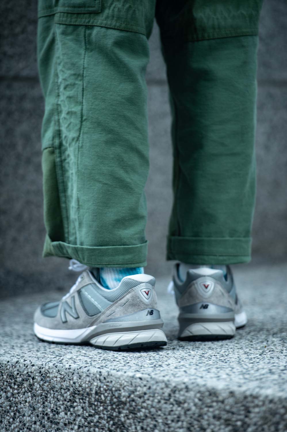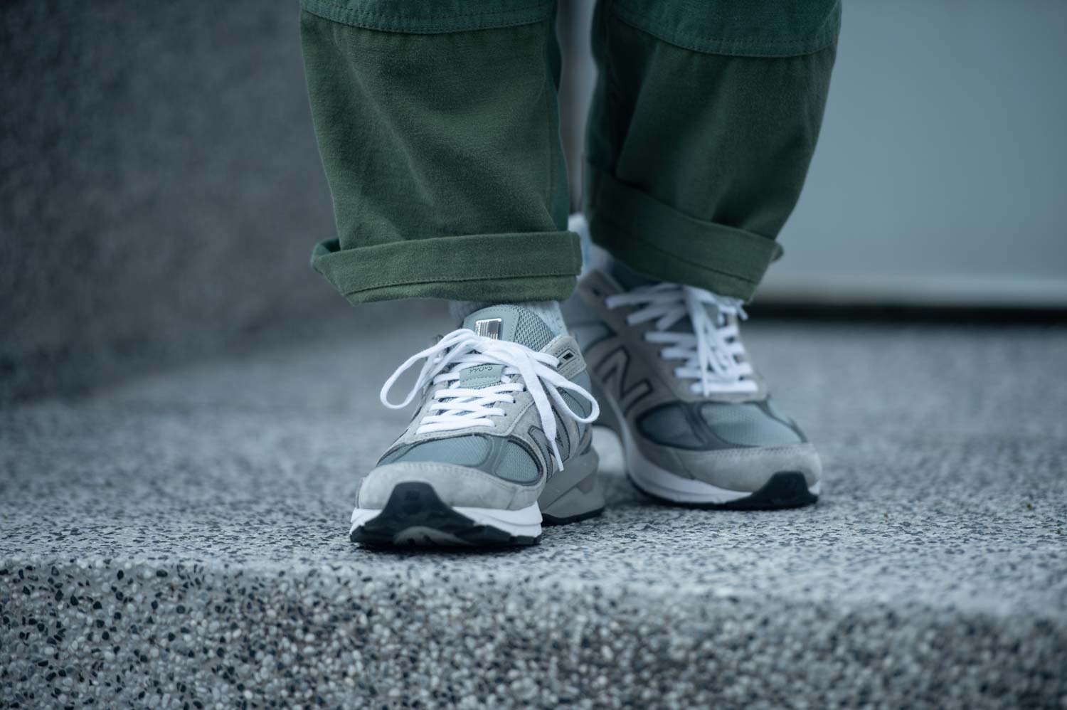 鞋面採用麂皮與 REPREVE 47% 來自環保再製的網布材質製成,為環保盡一份心力,鞋跟後方代表五的羅馬數字「V」則是第五代獨有的設計元素。全方位 360 度的反光 N 字 logo 設定能在夜間增進安全功能。鞋後跟搭載具有運動控制功能 NB 專利的 ENCAP 緩震系統,990V5 的腳感帶有一些 V3 的感覺,目前率先登場的是元祖灰的款式,六月上旬將有其他配色與楦型到港發售。