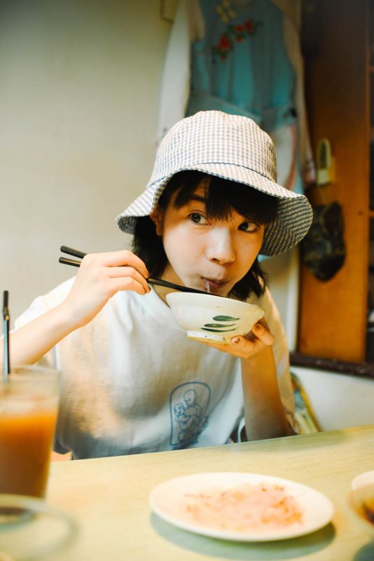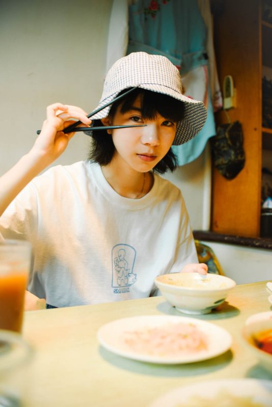 遠地便能見到笑得燦爛的 HOHO, 台電大樓站這附近巷子實在挺安靜,唯獨巫雲和 HOHO 在這塊冷色調的畫面中跳脫出來。其實就住隔壁條街,HOHO 說從畢業後便一直住在這邊,「這邊咖啡廳跟酷酷的小店異常地多,但同時又保有放鬆的氛圍,也可能是我住久了吧?總之就是很喜歡這裡!」。白T配件牛仔褲,隨手抓個帆布袋,仔細一看發現的確很是在家附近閒晃的打扮。