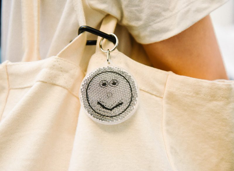 準備起身離開時,發現 HOHO 的小包上就繫著剛才提到平山昌尚的周邊商品,滿滿的惡趣味藏在簡單的線條之下,不曉得是真的開心還是調皮的笑,不過總覺得這神秘的笑容跟 HOHO 整個人的氣質很相襯,開心就好!