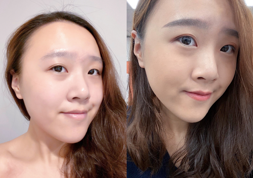 (左)做完SPA後的發光肌膚 / (右)妝容服貼不卡粉
