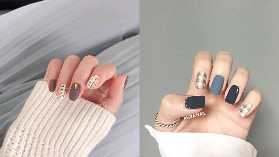 #性冷淡風x霧面格紋美甲