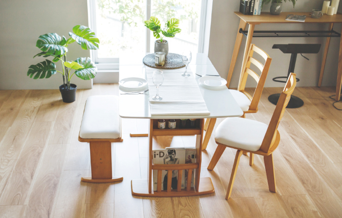 而且桌子是可以伸縮的,根據家中人數做調整,不管是新婚夫妻還是4人小家庭都很適合這款餐桌椅,側面甚至有小小的收納空間供你擺放醬料或雜誌等,設計巧思讓人看得太佩服了!