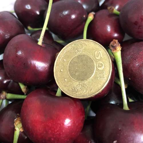 9.5 ROW的加州櫻桃大約是50元硬幣大小,比例尺給大家參考看看,個頭可真不小呢!