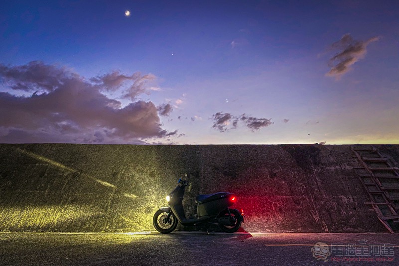 這裡的微妙差異,如果要我拿 Gogoro 車款來形容的話,我會覺得 Ai-1 Sport 騎起來的感覺介於 Gogoro S1 與 S2 之間 -- 雖然不若超小車身的 1 系列輕巧,但剛性、重心與車身動態確實會讓我有一種騎乘 1 系列的那種樂趣,但卻又有 2 系列更適合雙載以及保養維修起來更無負擔的優勢(說起來,大燈表現也很像啊 XD):