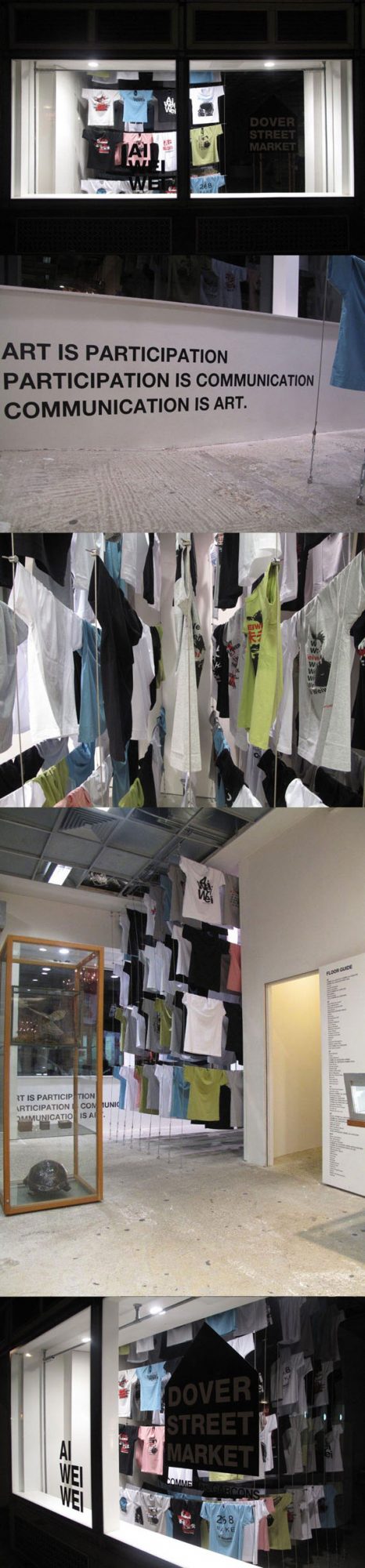 川久保玲的特別櫥窗擺飾在Dover Street Market.這是為了慶祝大陸藝術家艾未未在泰特現代美術館展出.我們已經可以看到一些t-shit,藝術和塗鴉已經呈現.當然也有需多聯名限量商品,如果你在附近,可以順道去看看.