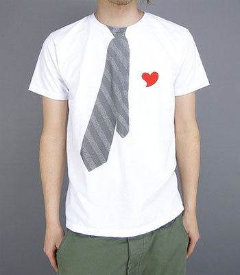 之前流行偽兩件式t-shirt style,偽吊帶式t-shir,今年夏天又可以好好偽裝一下了.Beams T推出這款領帶t,胸前的紅色愛心顯得有誠意多了?