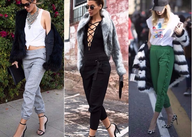 第三個關鍵就是「奢華元素」,例如下方3組潮人~在運動風之外搭配上皮草外套,以及有質感的配件如墨鏡、飾品及包包,為運動休閒風注入奢華氣味,提升運動縮口褲的穿搭檔次,當然別忘了細跟高跟鞋,有高度才能撐出運動時尚的氣勢。