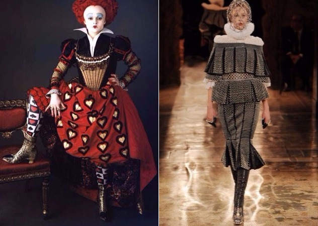 紅心皇后在大家心目中是個很有距離感的可怕女人,動不動就暴怒,喜怒無常的個性超級難接近。在劇裡的服裝也都很浮誇~但如果今天她要變身成時尚咖,還有什麼比這身Alexander MacQueen的高領鎧甲感戰袍更適合她,那頂頭飾也是超有女王霸氣的。