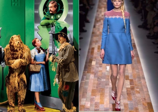 再角色的設定裡,桃樂絲因為龍捲風的關係被吹到奧茲王國,她和夥伴獅子、機器人、稻草人在奧茲國和追尋勇氣、善心和智慧的歷險故事。故事劇情充滿想像力,就是這個角色最迷人的地方,而時尚版的她則會穿著來自Valentino 2013 collection系列的洋裝,藍色配上粉紅色有種童趣少女感,還有一雙絕對不能錯過的魔法紅鞋。