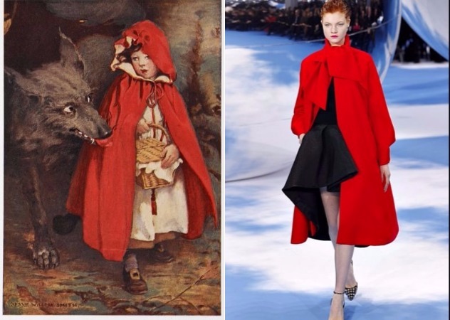說到小紅帽,大家想到的一定是一個披著紅色斗篷的可愛純真小女孩,而她的時尚版當然脫離不了紅色斗篷啦!來自Dior的童話感紅色斗篷,上面有個大蝴蝶結,突顯出小紅帽的甜美感。