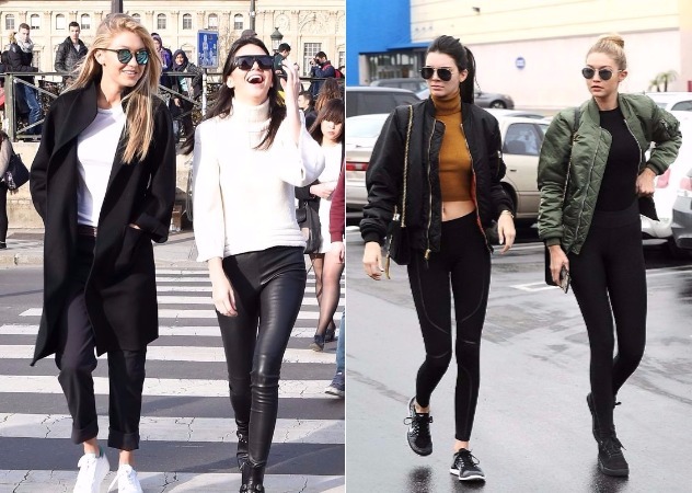 Gigi跟Kendall也是超級好閨密,兩個人私下裝扮完全是默契滿分!他們都喜歡穿黑色的單品,簡約路線女孩們可以好好筆記,完全是可以應用在日常生活的Look,找一件共同單品也是閨蜜裝必備,像之前很紅的飛行員外套兩人也心有靈犀的穿上,黑色和墨綠,妳們覺得哪一件更好看呢!